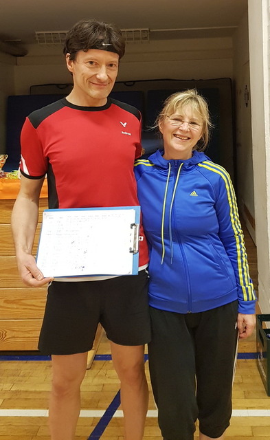 Ganze 23 Teilnehmer fanden sich in der Halle ein und wollten um die Platzierungen kämpfen, wobei der Spaß am Spielen ganz im Vordergrund stand. Schon waren die Lose für die erste Runde frei gegeben und los ging es nun spielerisch in die geplanten 5 Runden mit jeweils 2 Sätzen bis zu 15 Punkten in den Abend…