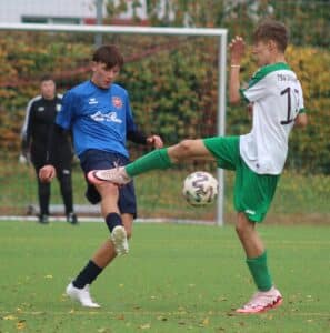 Bereits am Freitag (25.10.) kam es zur Austragung von drei Punktspielen. Dabei empfing Lok‘s E1 die von Empor Erfurt. Diese machten von Beginn an Druck auf das Tor von Henri Thater, der sich auch gleich mehrmals auszeichnen konnte. Gegen den Flachschuss nach zehn Minuten war er aber machtlos. Lok nun auch mit Möglichkeiten, jedoch nach Standards (Eckbälle) nicht erfolgreich. Auch ein Geschoss von Evan Huigen strich übers Tor, wie ein abgefälschter Schuss der Gäste. Gleich nach dem Wechsel war wieder Henri Thater gefragt, der zwei Einschüsse verhinderte. Mit dem Ausgleich von Jannik Merten nach Eckball von Bruno Schlegel war Lok besser im Spiel (31.). Hatte auch durch Bruno Schlegel die nächste Chance. Mit einer wilden Abwehrschlacht, die Lok erfolgreich überstand, ging es in die Endphase des Spiels. Doch im Endspurt, auch durch zu viele Wechsel, geriet das Spiel wieder in die Hände der Gäste und Lok verlor noch 1:4.